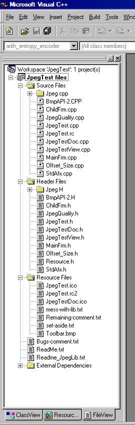Make sure to get the directories right, the lib (directory "lib") and the Visual C++ workspace (directory "JpegTest"). Bug found and fixed in "JpegLibWrap.cpp" Nov 2018.